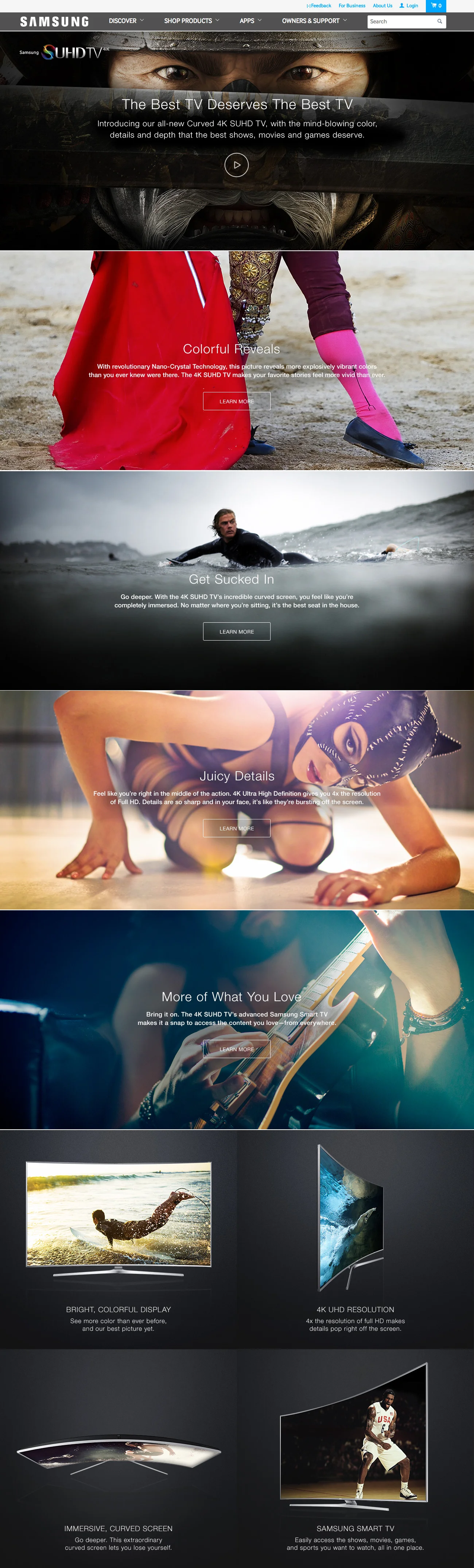 Designed a site to create an impactful, engaging experience to support the launch of Samsung's SUHD TV. The site showed striking visuals that felt like compelling moments from real shows to demonstrate that the best content deserves the best TV.